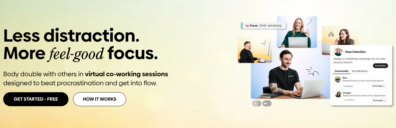 These apps connect you with other people (usually strangers) to create social accountability. Working alongside someone else, even virtually and silently, helps a lot of people focus and follow through. This is especially true for people with ADHD. The concept is called "body doubling," and the research shows it genuinely works.