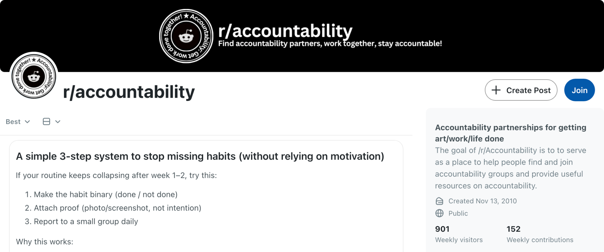 Worth knowing: The best approach is to treat it like a trial period. Post in a subreddit, match with someone, and give it two weeks. If they're consistent, you may have found something genuinely valuable. If they ghost (which is the most common outcome), don't take it personally. It's the nature of free, unstructured peer accountability. The people who want something more reliable are usually the ones who eventually move to a paid option.