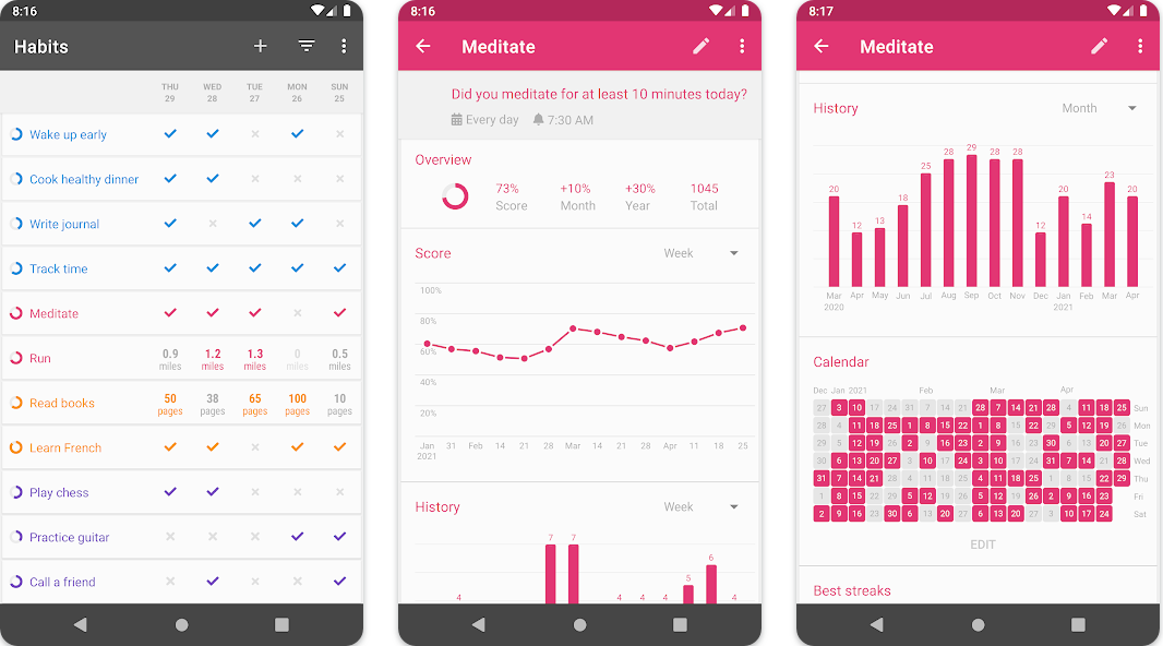 Best for: Android users who want a free, ad-free habit tracker with solid analytics